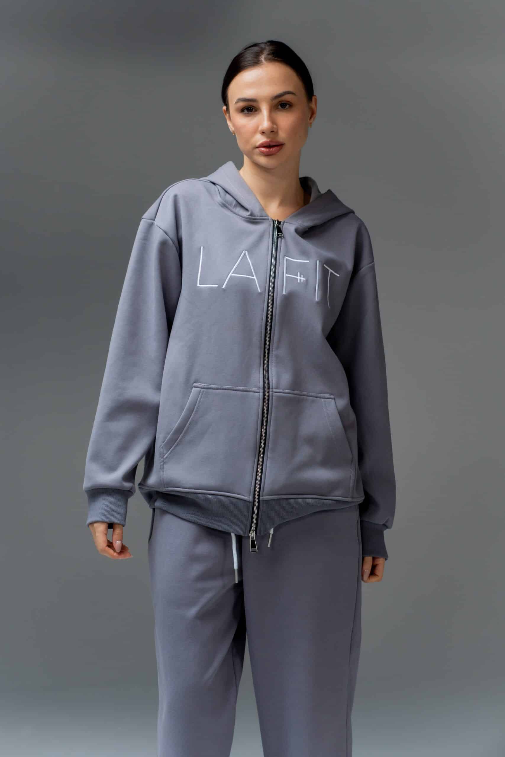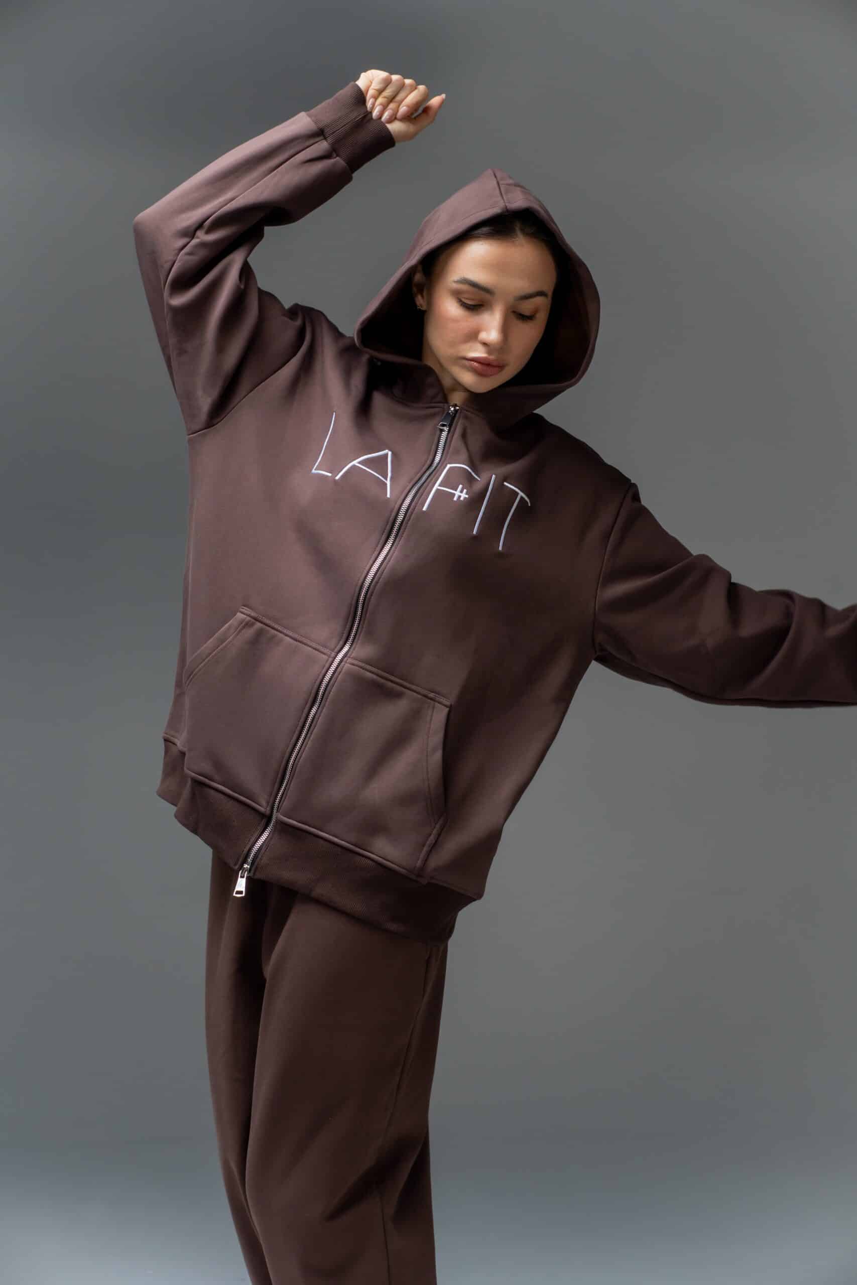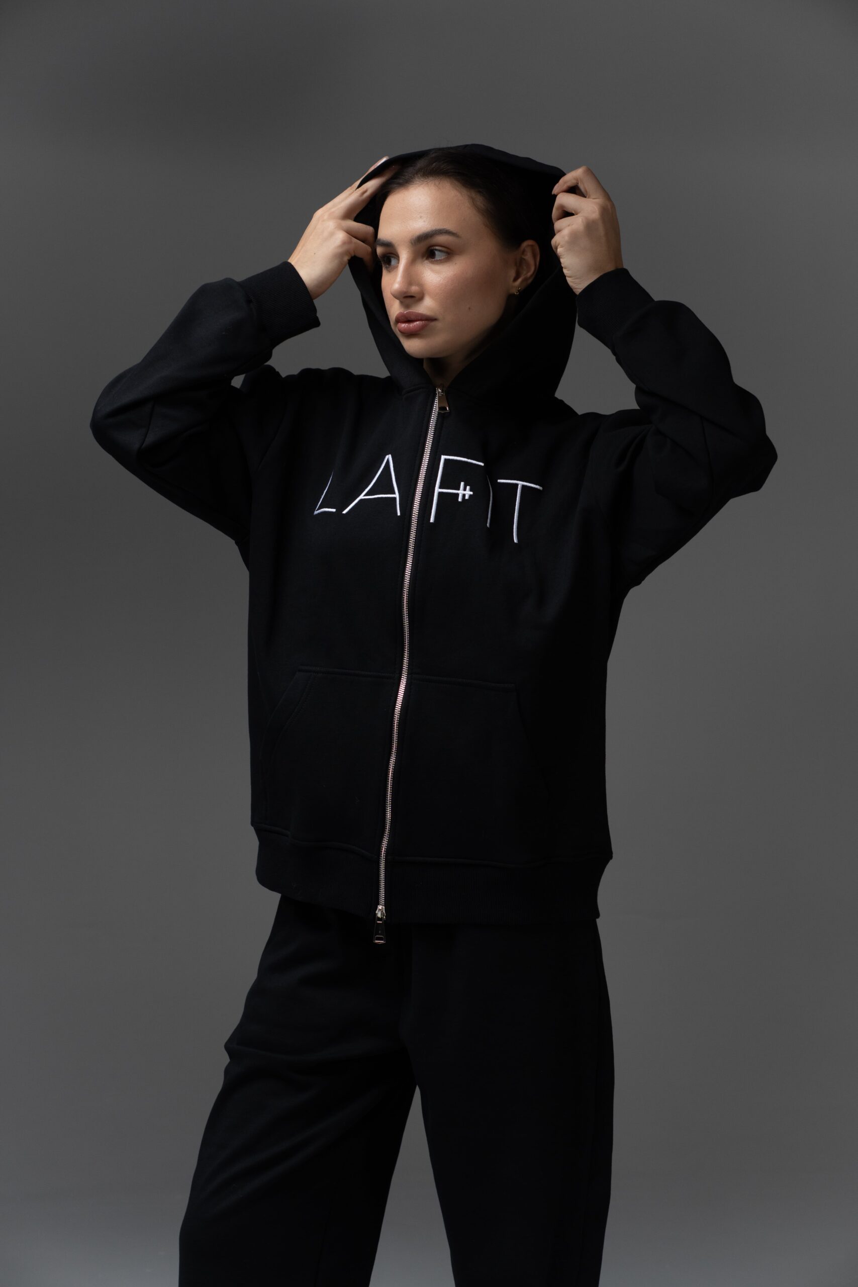 Oversized Zip up hoodie featuring a front metallic zipper, roomy hood, and large front pocket. This hoodie is crafted with a soft and comfortable fabric, making it ideal for casual wear or light workouts.