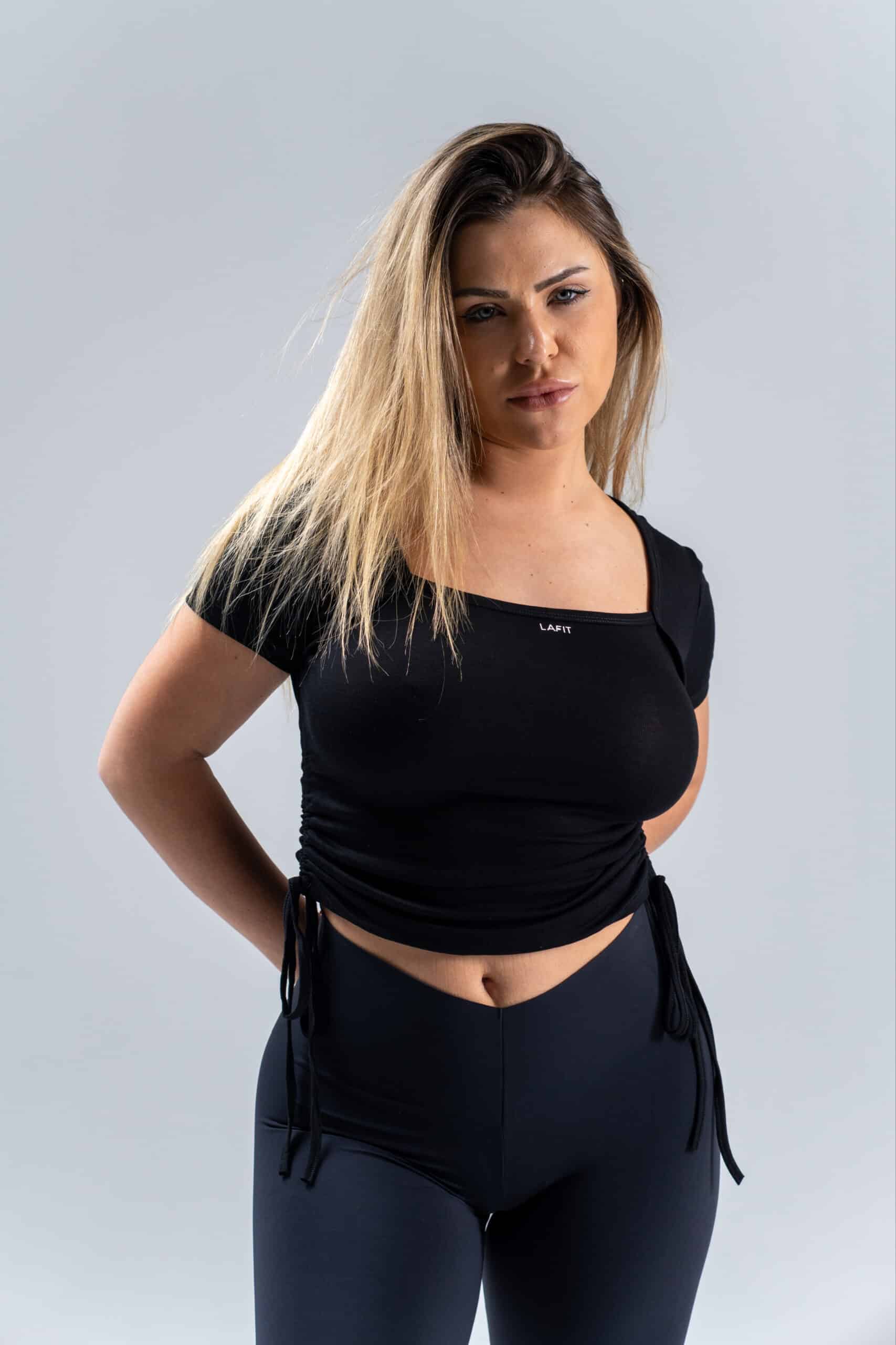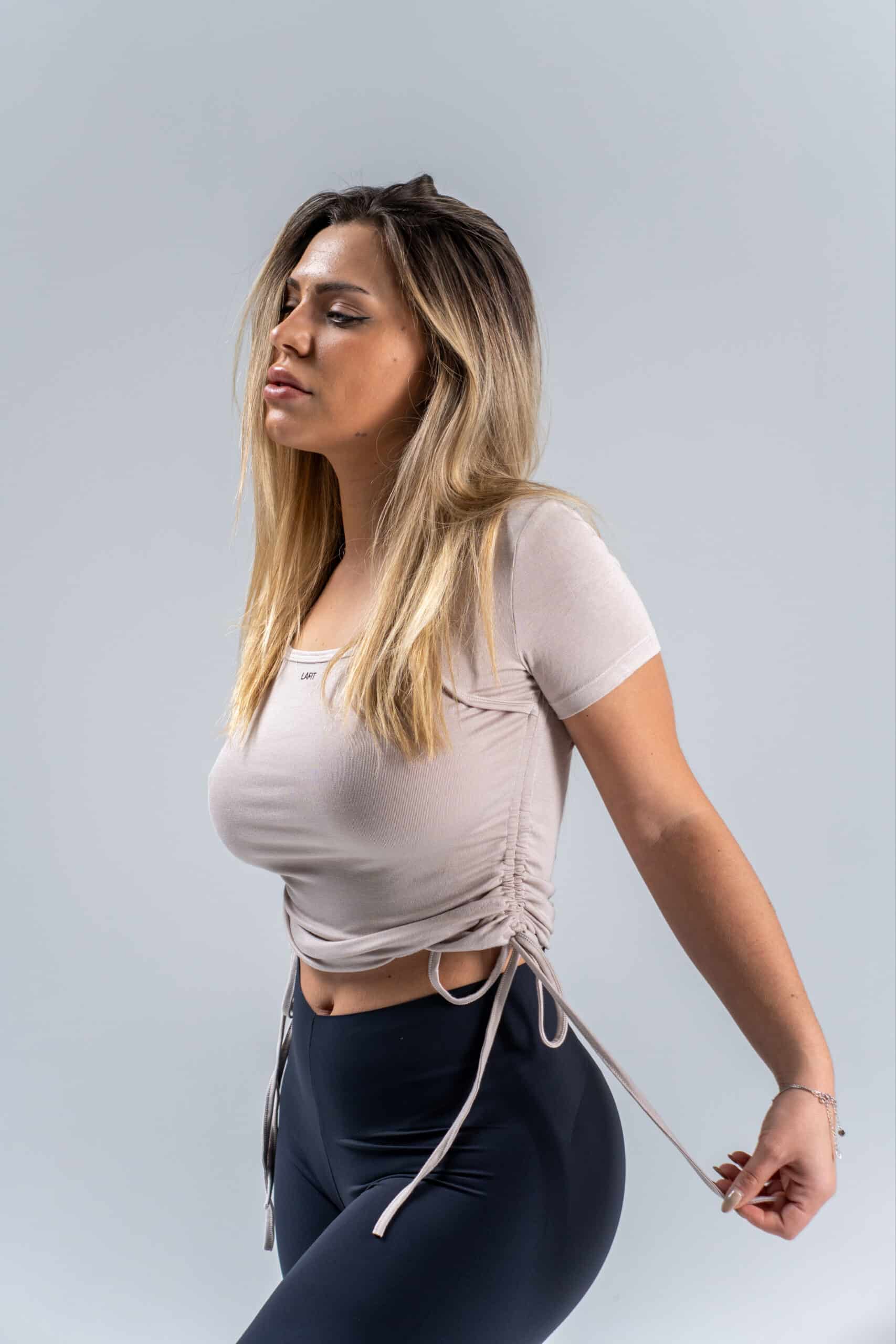 The Ruched Side Tee is designed with an adjustable side drawstrings. The tee pairs with leggings,  jeans or any activewear bottom. Perfect for casual outfits, gym looks or everyday comfort.